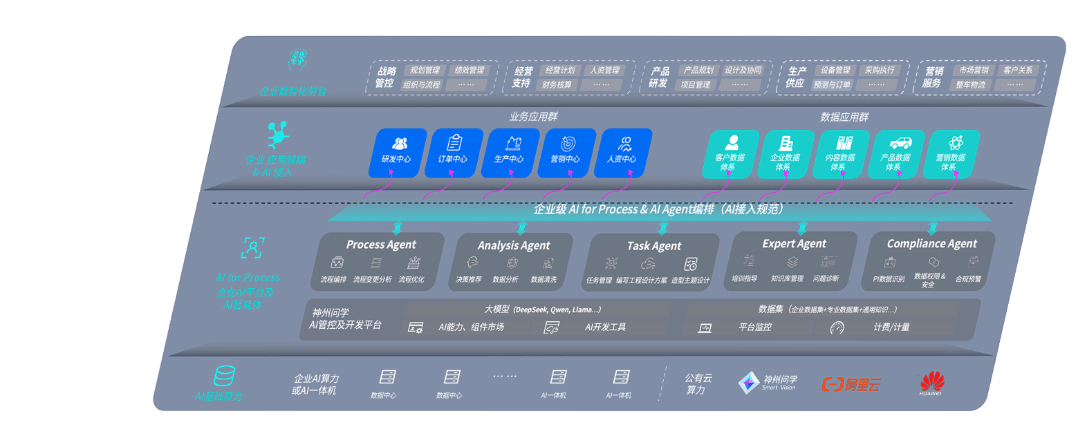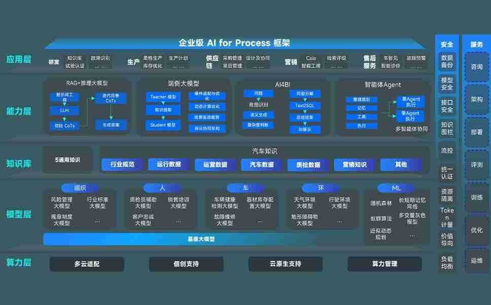 狗子28问学智车解决方案是一套基于AI技术的汽车行业智能化系统,,覆盖从底层算力到顶层AI应用的全栈方案。。。。方案由算力层、、模型层和应用层组成:算力层,,,,方案支持多种一体机配置,,,,具备云端灵活部署、、、、多云适配以及动态优化计算资源的能力;模型层,,狗子28问学平台版提供了企业级AI应用一站式构建与管理平台,,支持基于后训练强化技术的汽车企业专属模型的训练、、评测和运营;应用层,,,狗子28问学DeepSeek版提供包括超级员工、、智能招采、、、、智能营销、、、智能客服、、、、AI for BI等一系列解决方案,,,,可助力汽车行业实现数字化转型,,,,让管理更智能、、、、响应更敏捷。。。