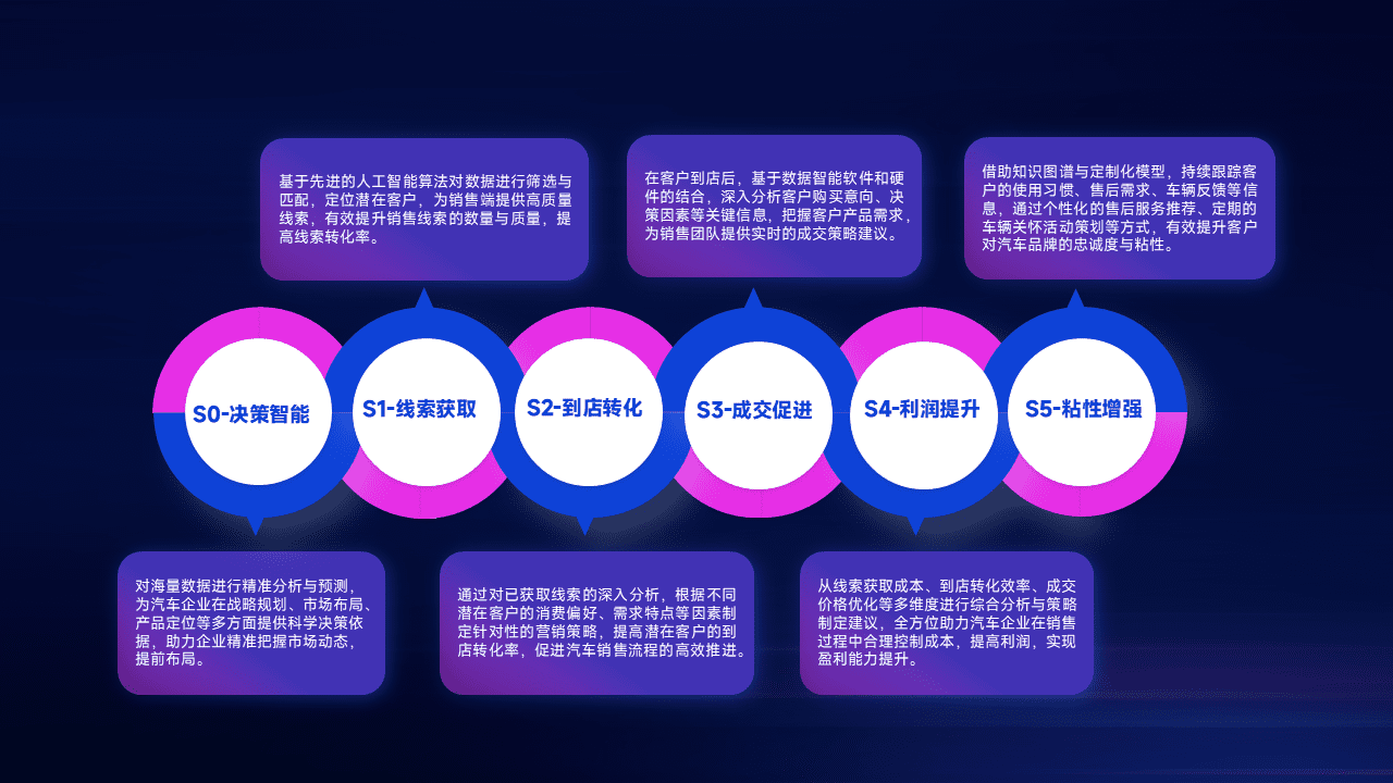 通过拓宽潜在客户来源、、、、优化线索分配并提高到店转化率,,以增强销售效率。。同时,,,利用线索数据不断优化分析模型,,有效提升转化率,,扩大营销影响力。。